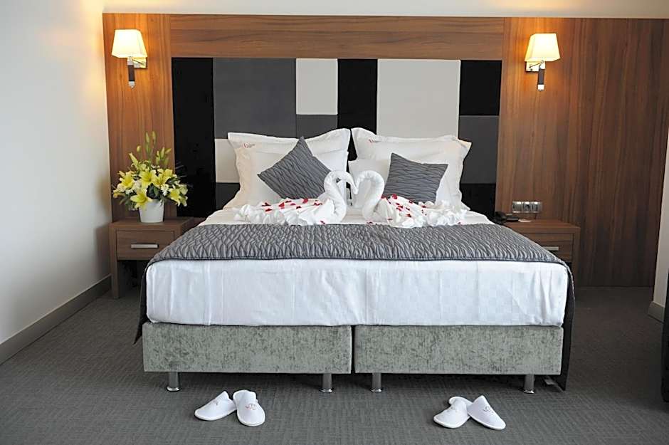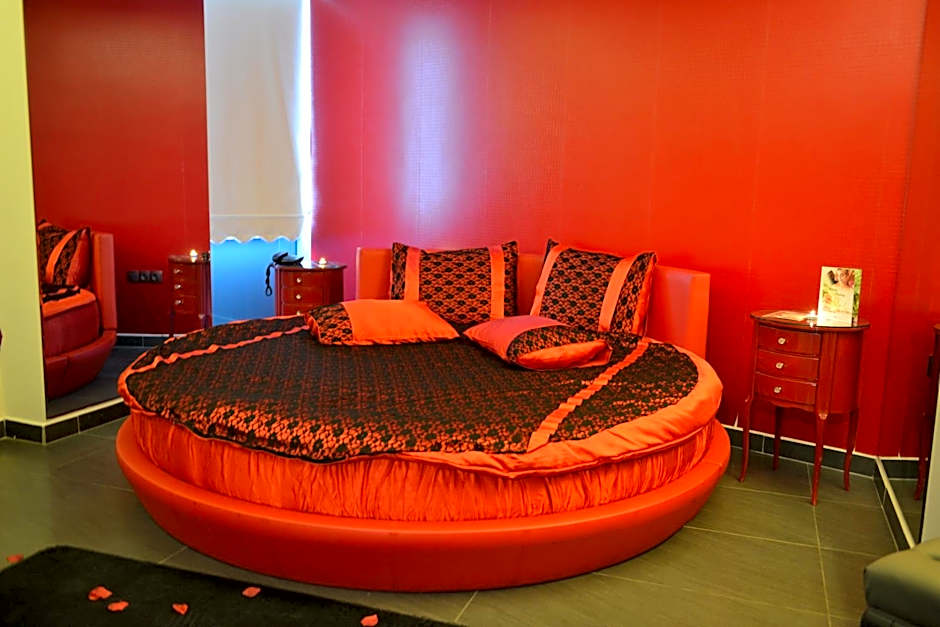 This room offers a round bed and a spa bath. The private bathroom has a unique design and comes with a heart-shaped red sink. Please note that there is no space for extra bed in this room.